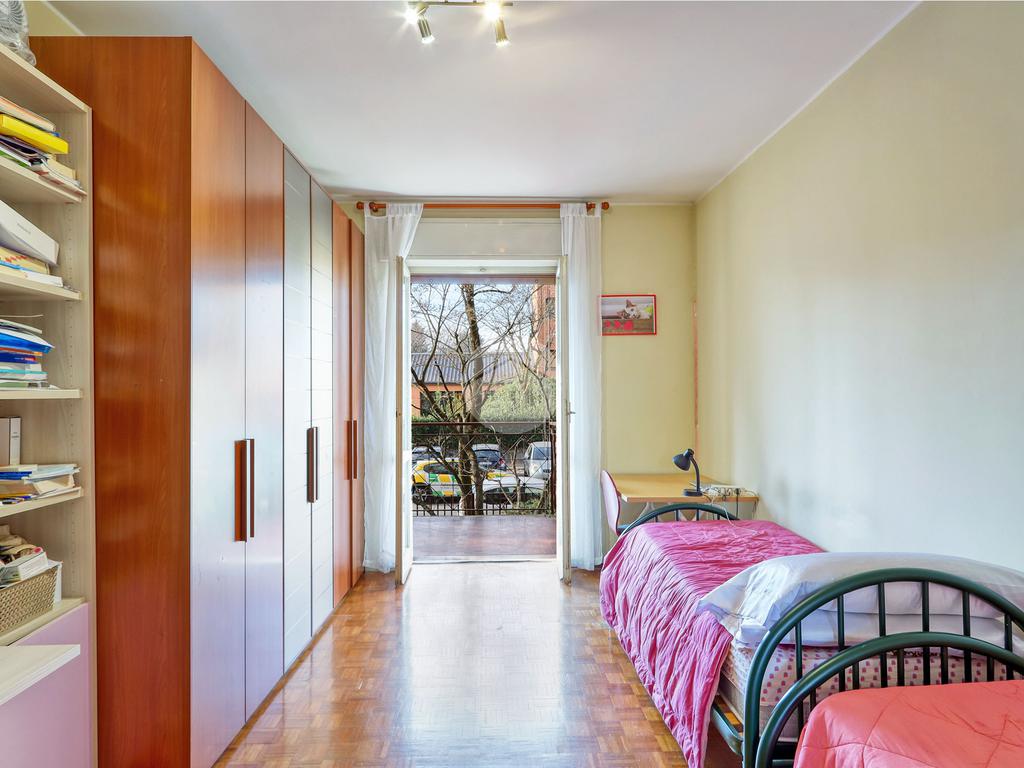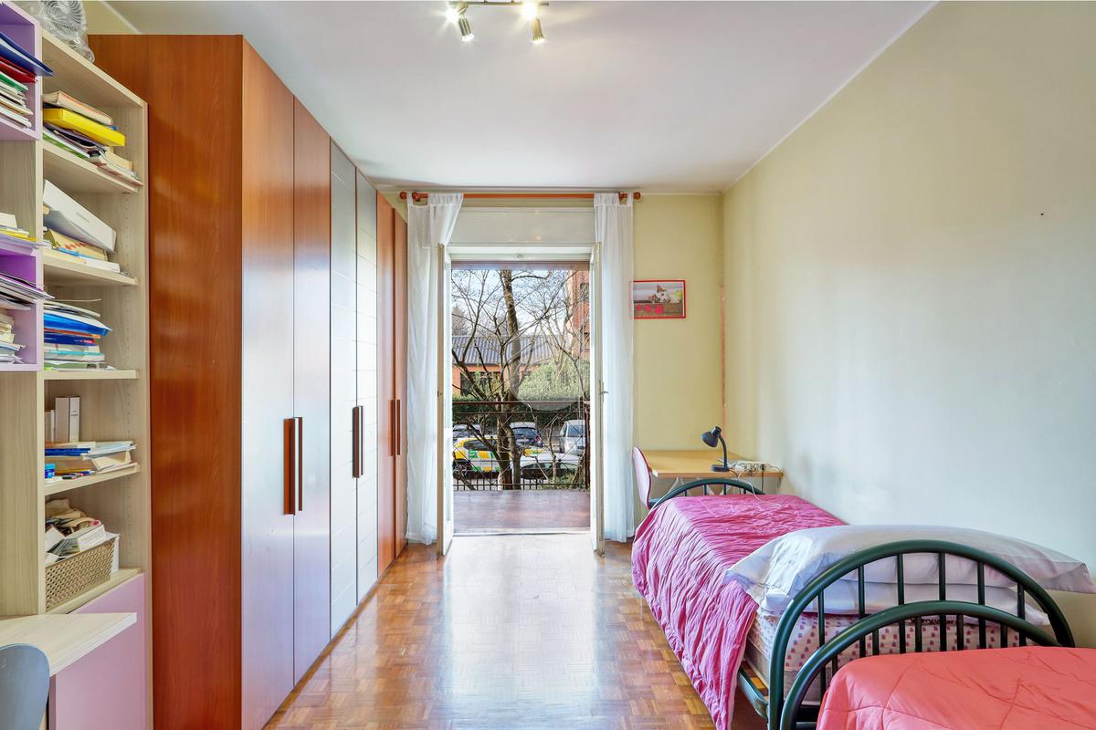 L'appartamento comprende tre locali, tra cui cucina separata, soggiorno, due camere da letto accoglienti e due bagni.